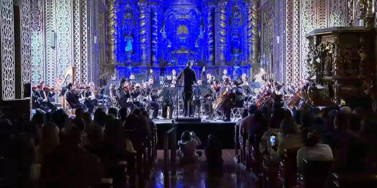 La música clásica resonó desde una de las joyas arquitectónicas de Latinoamérica, la Iglesia de la Compañía de Quito, donde la Orquesta Sinfónica Nacional del Ecuador brindó su concierto de temporada, con 70 músicos en escena.