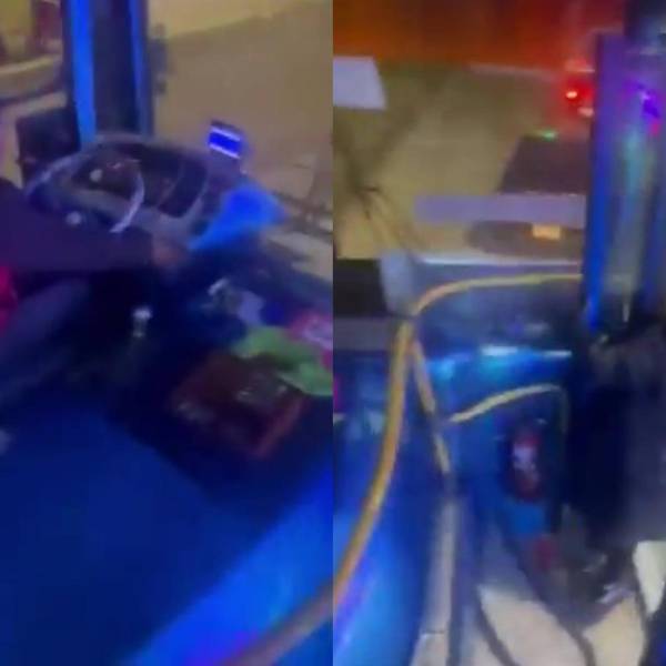 Capturas de pantalla de un video captado del bus dirigiéndose al Hospital Padre Carollo, porque uno de sus pasajeros fue apuñalado.( )