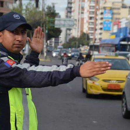Agente civil de tránsito en zonas de alto tránsito en la ciudad. ( )
