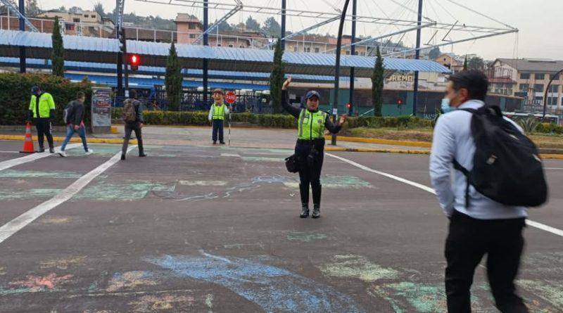 Los agentes civiles de tránsito controlan el cumplimiento del pico y placa en Quito. ( Cortesía de Quito Informa ) -