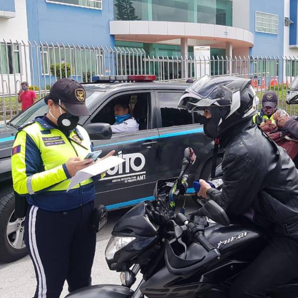 Una agente civil de tránsito realiza controles en Quito. ( )
