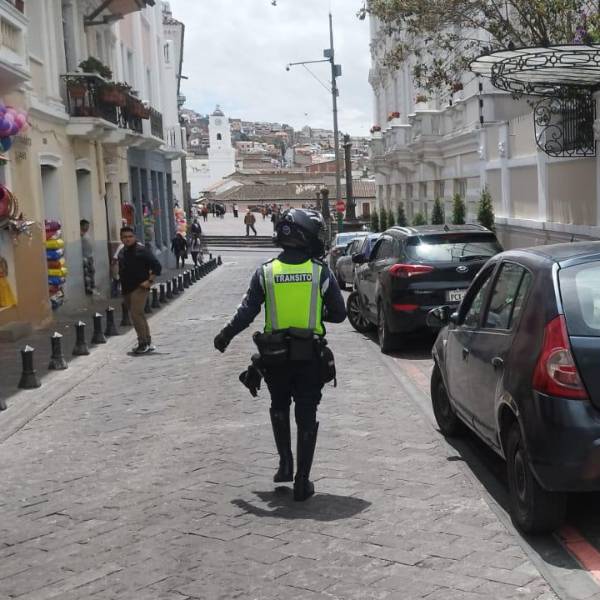 Agente de tránsito durante un operativo de control en el Centro Histórico de Quito. ( )