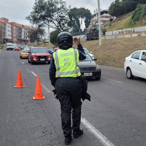 Agente metropolitano de tránsito durante un operativo en el norte de Quito. ( )