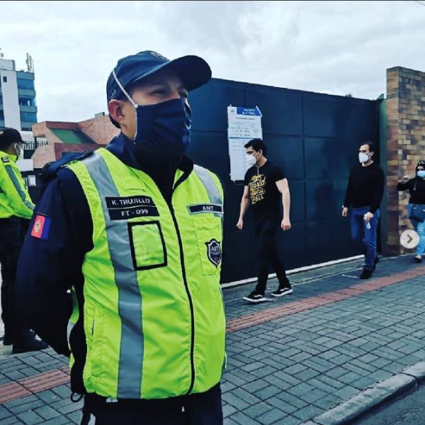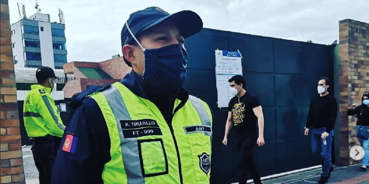 Agente de tránsito fuera del Colegio La Condamine.( )