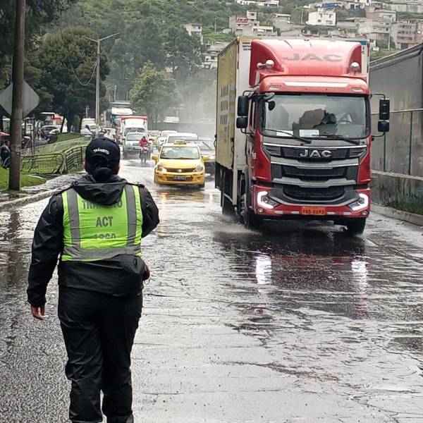 Personal de la AMT gestiona la movilidad en zonas de Quito en donde hay siniestros por las lluvias. ( )