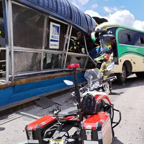 Imágenes muestran que el autobús destrozó la infraestructura de esa parada. La parte frontal del automotor quedó incrustada en la estación. Los vidrios de la parada quedaron esparcidos en la vía.