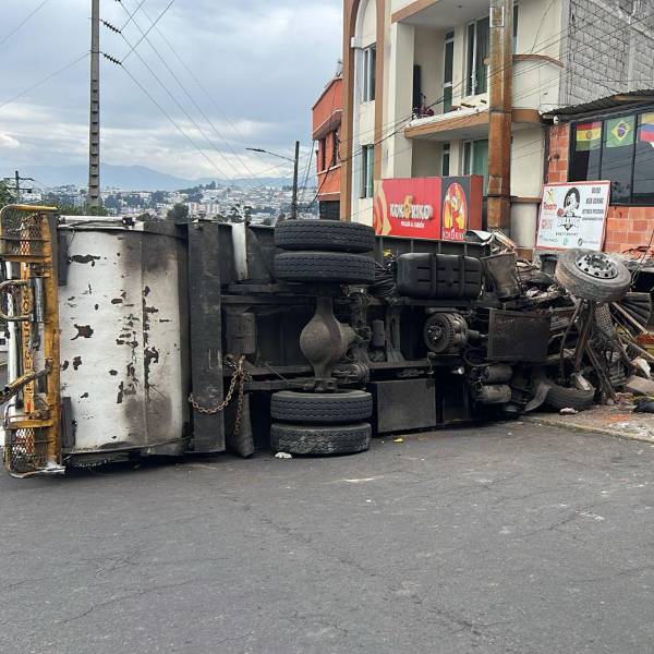 La emergencia fue producto del impacto de un vehículo pesado contra un inmueble. El CBQ atendió a cuatro personas. Tres de ellas fueron atendidas en el sitio. Una fue llevada a una casa de salud. La vía se encuentra cerrada en sentido Quito - Nono.