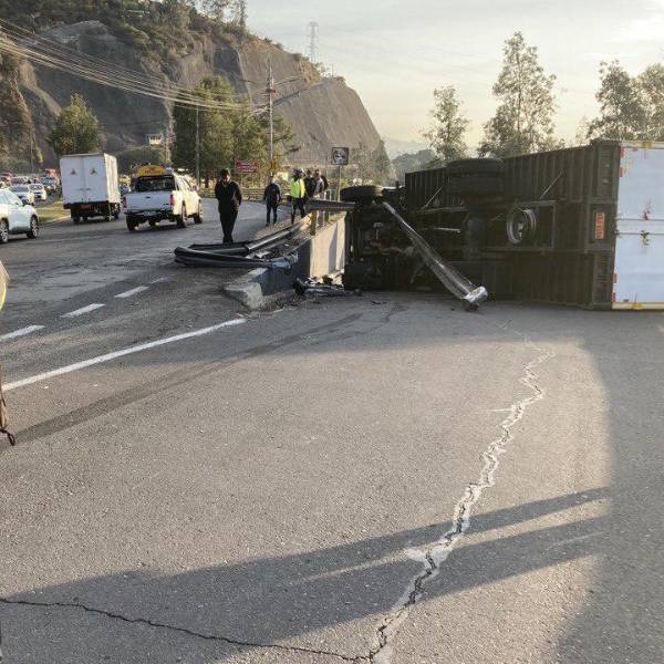 Quito: un camión se volcó en el ingreso a Zámbiza y bloquea el acceso a esa parroquia
