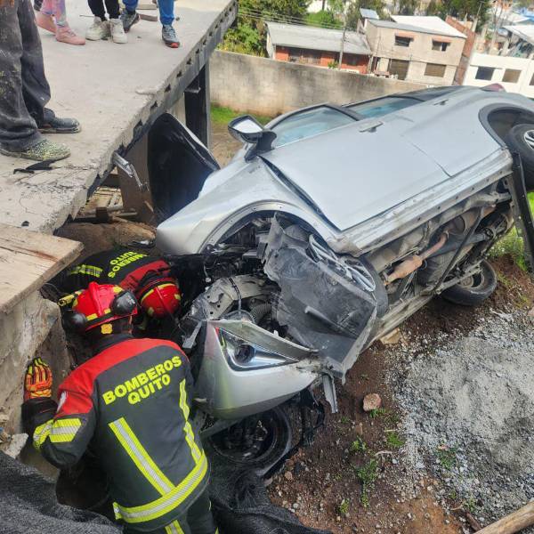 Quito, Conocoto: un auto se volcó y quedó a metros de unbarranco, dejando tres heridos