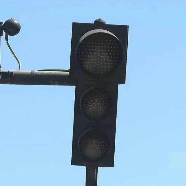 Imagen de un semáforo sin funcionar por los apagones, durante una mañana en Quito.( )