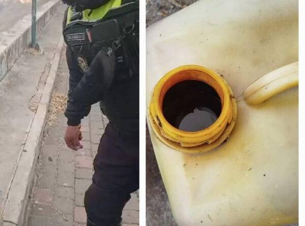 El material inflamable fue localizado por el agente civil de tránsito Luis Tonato que patrullaba por el sector. Los envases estaban en la parte posterior de la iglesia de Guápulo.