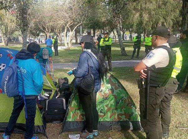 Denuncias ciudadanas alertaron sobre la presencia de familias extranjeras en el parque La Carolina, norte de Quito. Vivían en carpas y en varias de ellas había niños pequeños.
