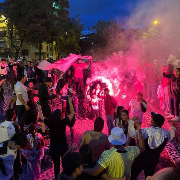 Los fantasmas de perder otra final quedaron en el olvido. A los fanáticos no les importó el frío de la tarde ni la llovizna e ingresaron a la pileta con bengalas encendidas. Niños, jóvenes y mujeres se abrazaron. Chapoteaban en el agua y sonreían. Agitaban las banderas blancas ante la atenta mirada de un grupo de guardias de seguridad que custodiaban los accesos el Teatro Universitario.