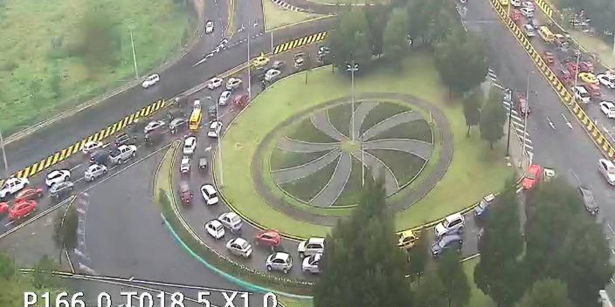 Imagen del intercambiador de El Trébol en donde hubo congestión vehicular en medio de la lluvia. ( )