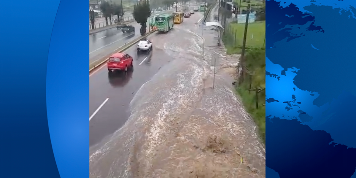 La tarde de este sábado 26 de abril de 2025 se reportó un fuerte aguacero en Quito. Por eso, el ECU 911 informó que se produjo el desbordamiento de una quebrada en la autopista General Rumiñahui, a la altura de los puentes 3 y 4, en medio de las precipitaciones.