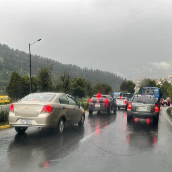 En la autopista General Rumiñahui circulan miles de vehículos en medio de la lluvia. ( )