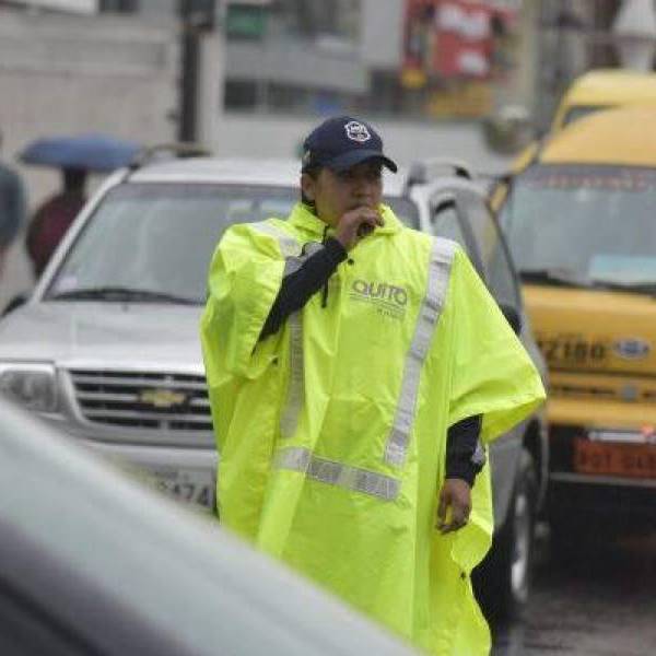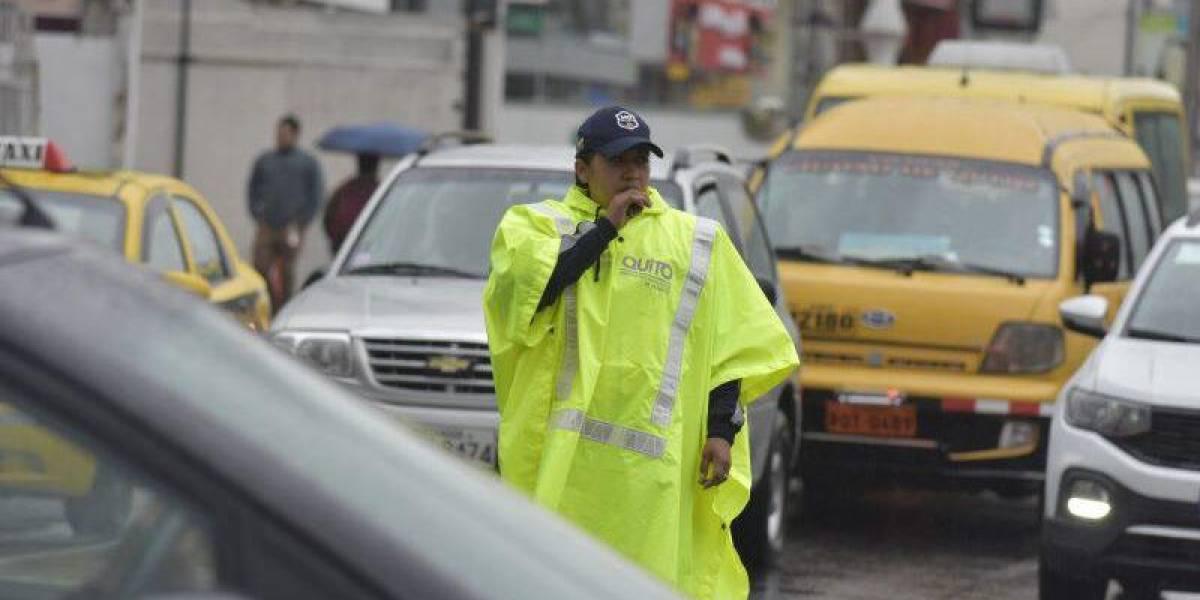 Agente civil de tránsito ayudando en la movilidad de Quito( )