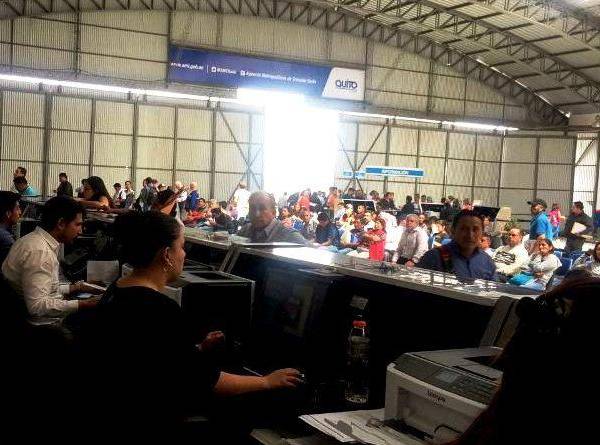 Cientos de usuarios en el centro de matriculación vehicular del Bicentenario, norte de Quito.( )