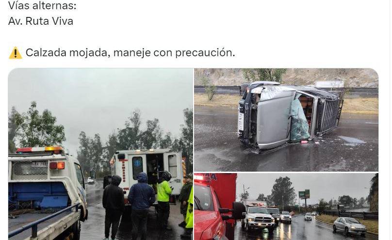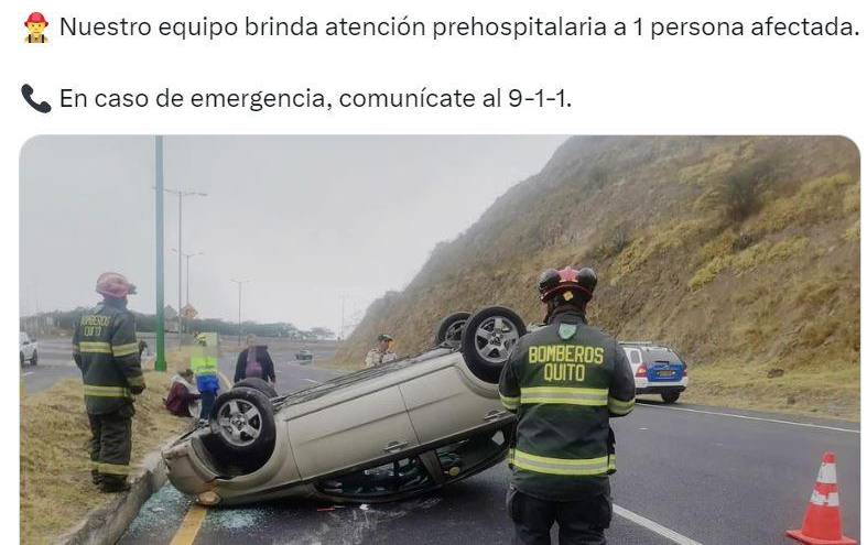 Los Bomberos de Quito también reportaron un auto volcado en el peaje de Oyacoto, en el norte de Quito. Una persona resultó herida.