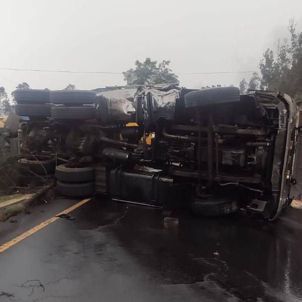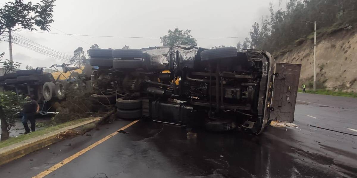 El Cuerpo de Bomberos (CBQ) informó que un tanquero se volcó en la vía. "Nuestro personal paramédico realiza la valoración y atención de un paciente masculino conductor del vehículo pesado".