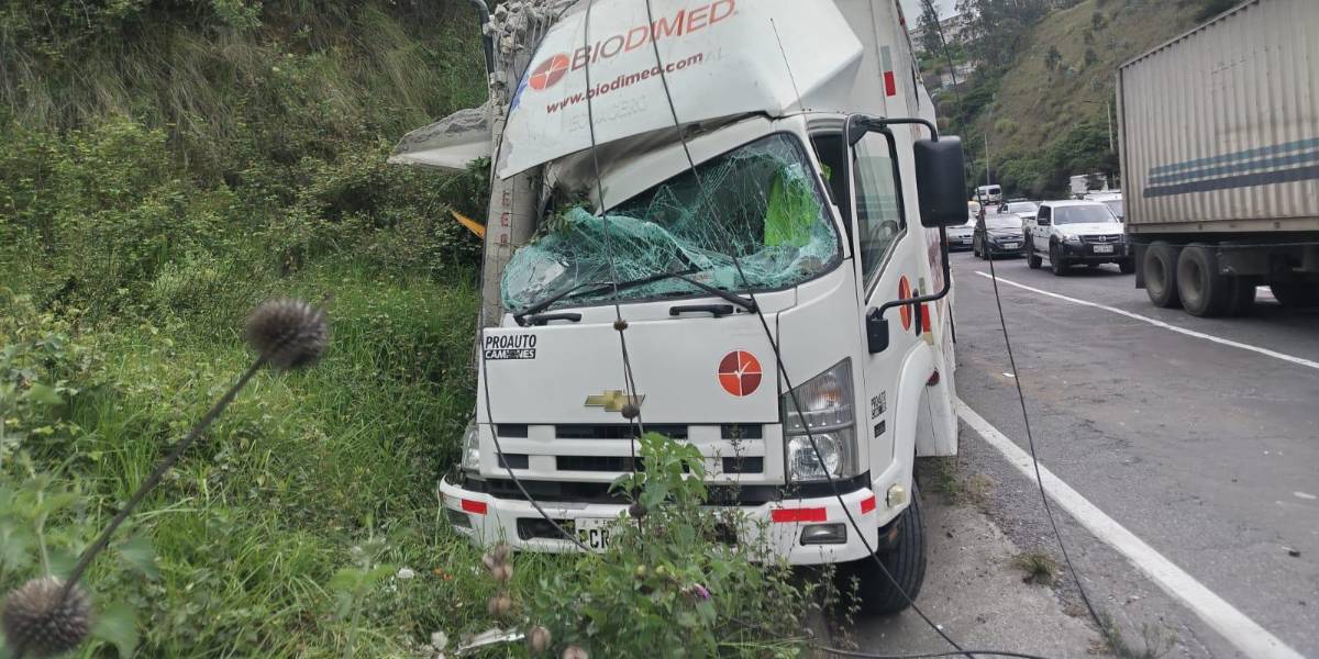 Un alertante reportó el choque de un camión contra un bus. Se movilizaron recursos del Ministerio de Salud Pública (MSP), la Agencia Metropolitana de Tránsito (AMT) y la Empresa Eléctrica de Quito (EEQ).