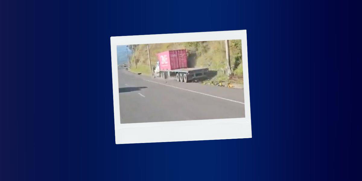 Un siniestro de tránsito quedó registrado en video, este miércoles 12 de noviembre de 2025. Ocurrió pasadas las 08:00 cuando un tráiler se chocó contra el talud de la curva de Santa Rosa, ubicada en la salida sur del Distrito Metropolitano de Quito.
