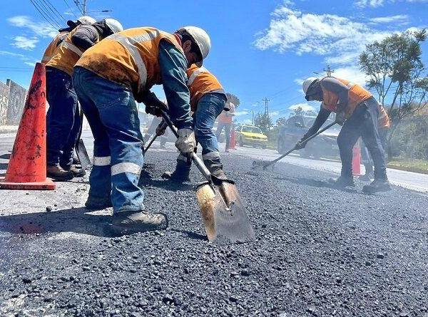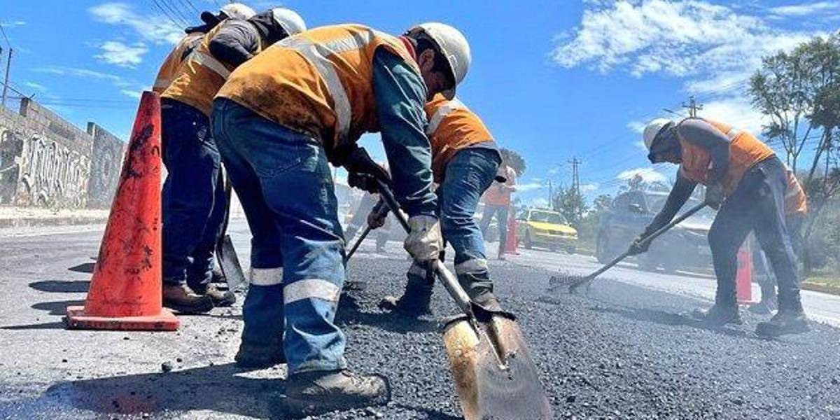 Imagen referencial de obreros trabajando en repavimentación, en Quito. ( )