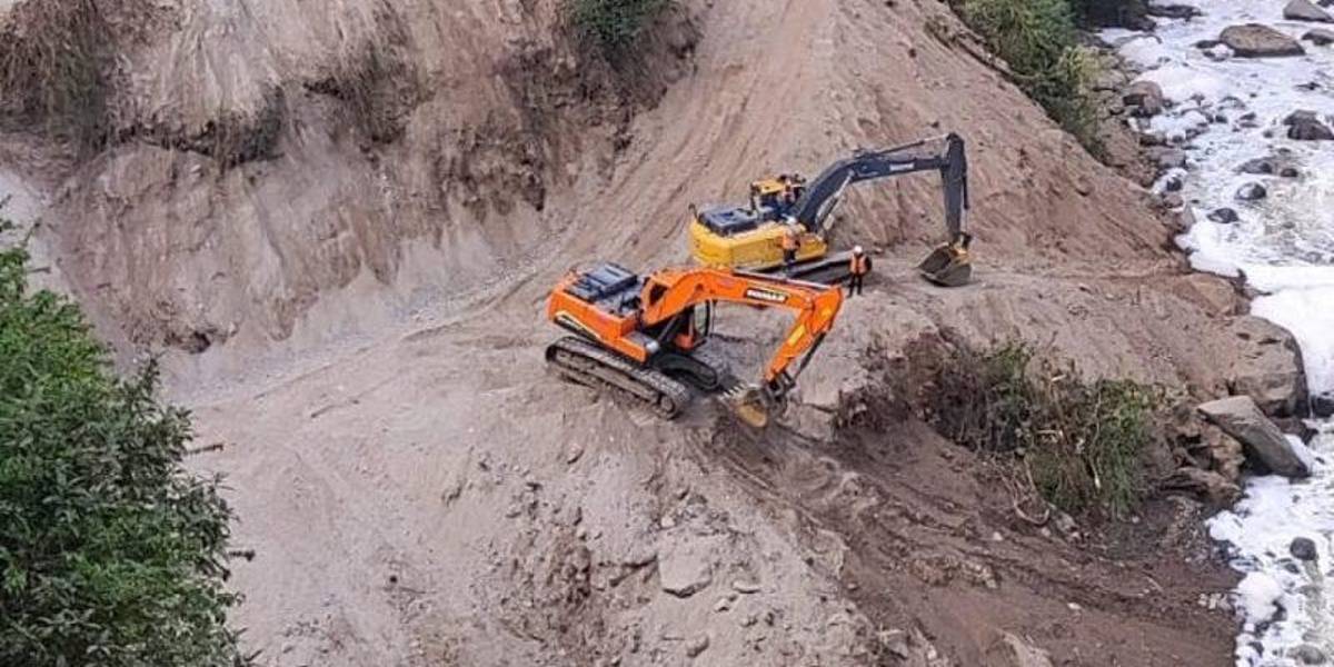 La Epmmop explicó que una vez que se abrió camino para el acceso de la maquinaria, se realizan actividades para la protección del área de trabajo con encauzamientos. Luego se construirá un muro de roca, denominada escollera, para protección de posibles socavaciones.