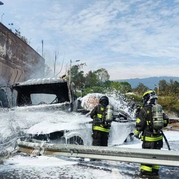 Uno de los afectados es un vehículo pesado de transporte de gas licuado de petróleo que se incendió completamente junto a otro auto liviano que quedó atrapado por el impacto. El incendio fue el que ocasionó la muerte de las tres personas. Dos víctimas murieron en el tanquero y uno en el carro.