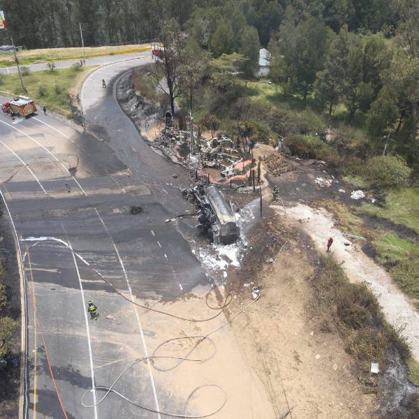 El incendio de un tanquero en la avenida Simón Bolívar y Ruta Viva, pasando el puente de Guápulo, en el oriente de Quito, no dejó víctimas mortales, pero sí daños materiales. Y el Municipio exigirá que los dueños del vehículo asuman los gastos.