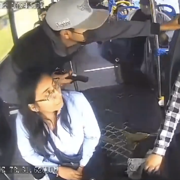 Las imágenes muestran a tres hombres que se levantan de sus asientos, en distintas partes del bus, y empiezan a sustraer, las pertenencias de los pocos pasajeros que iban en la unidad.