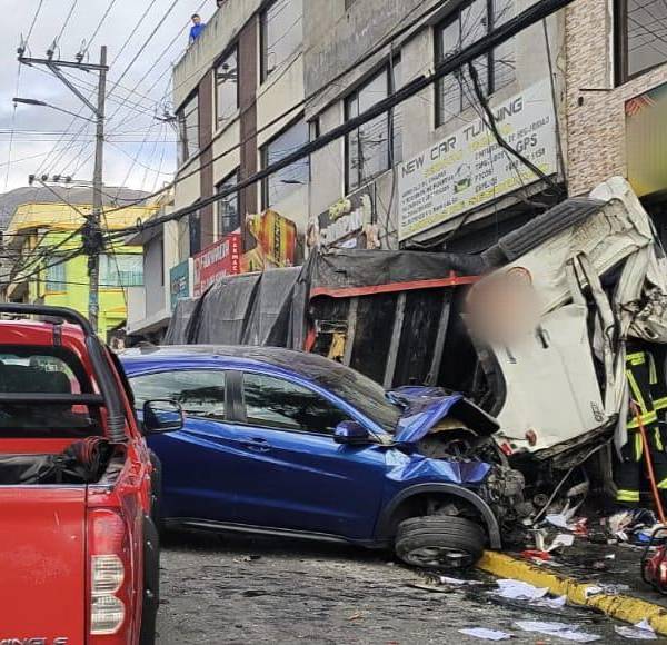 Una cámara de seguridad captó el momento en el que un camión a alta velocidad chocó contra varios vehículos en la calle Legarda. El vehículo pesado estaba en contravía.