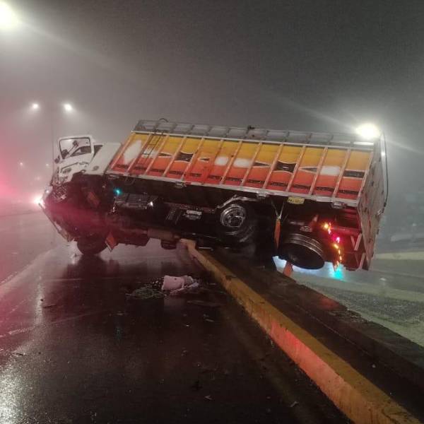 Al llegar al sitio, confirmaron el volcamiento de un camión que perdió pista sobre un puente en la avenida Simón Bolívar, en sentido Quito-Guayllabamba.