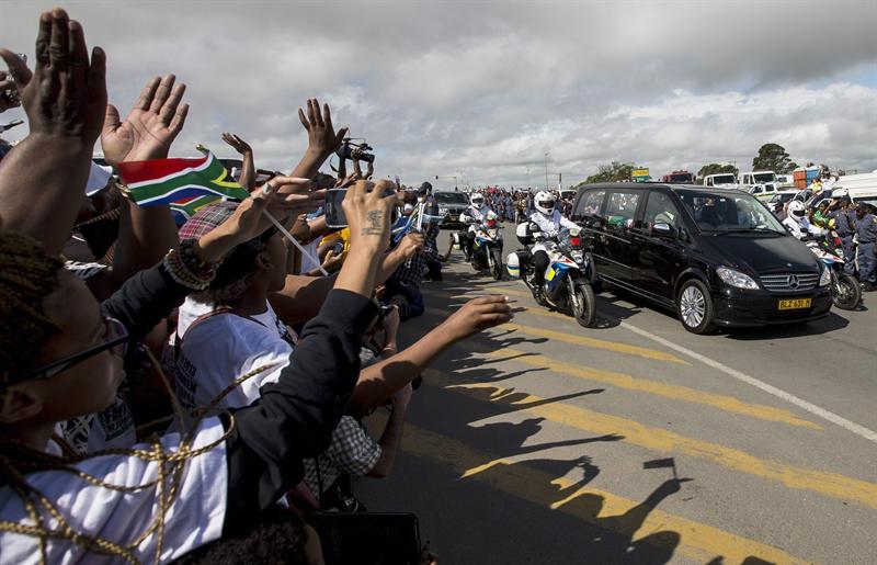 La furgoneta negra que llevaba al féretro de Mandela envuelto en una bandera sudafricana se dirigió después con todo el séquito a la casa del expresidente en la localidad.