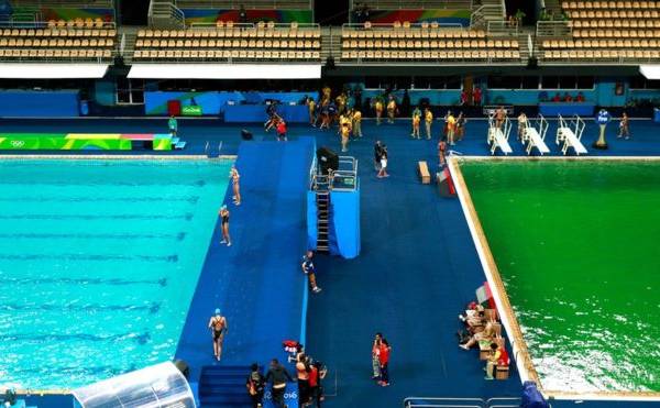 Efectivamente, el agua en la piscina de clavados de Río está verde, y aún nadie sabe por qué ocurrió esto.