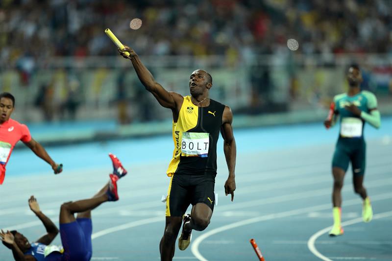 El jamaicano Usain Bolt consiguió este viernes 19 de agosto de 2016 completar el triple-triple de la velocidad 100-200-4x100 y con estos nueve oros alcanzó a dos mitos de la historia del atletismo como el finlandés Paavo Nurmi y el estadounidense Carl Lewis.