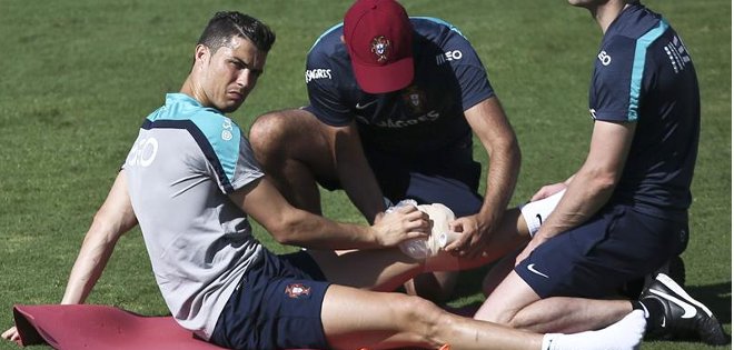 Ronaldo abandona de nuevo el entrenamiento portugués con hielo en la rodilla