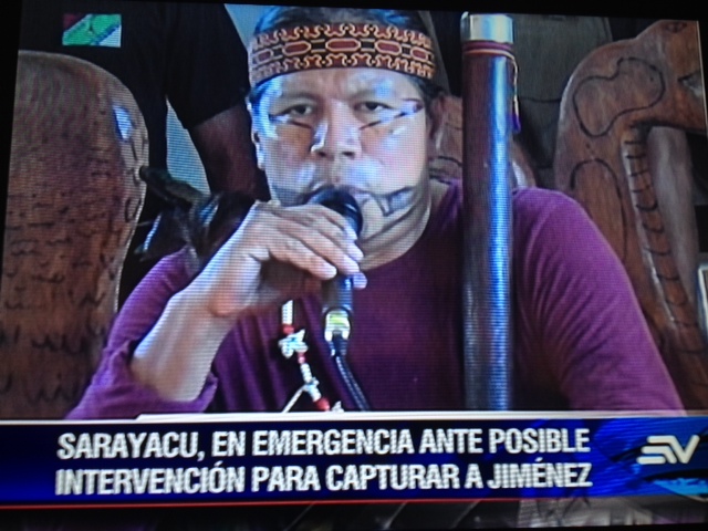 El pueblo Sarayaku se declara en emergencia ante una posible intervención para capturar a Cléver Jiménez, Fernando Villavicencio y Carlos Figueroa, sentenciados a prisión por injurias contra el presidente Rafael Correa.