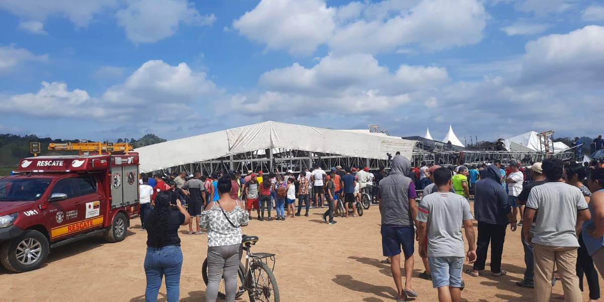 La tarde de este viernes, 22 de julio, se reportó la caída de una gran tarima en Chone, provincia de Manabí, a pocas horas de realizarse una serie de conciertos para festejar su cantonización, que se conmemora el domingo 24.