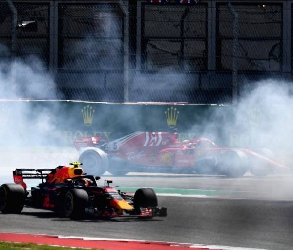 El piloto alemán Sebastian Vettel (Ferrari) perdió parte de sus opciones de victoria en el Gran Premio de Estados Unidos tras un toque con Daniel Ricciardo (Red Bull) que le hizo perder varias posiciones desde la primera vuelta.