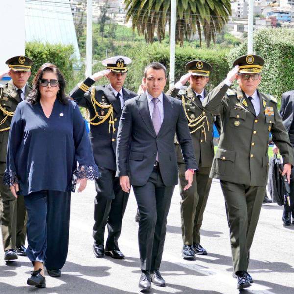 Junto al presidente Daniel Noboa participaron de este evento: el ministro de Defensa, Gian Carlo Loffredo y la Cúpula de las Fuerzas Armadas.