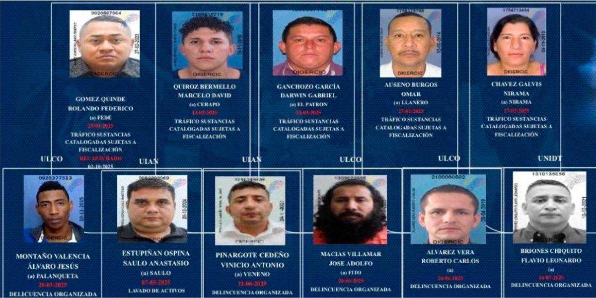 En lo que va del 2025 fueron capturados 20 objetivos de alto valor en Ecuador, entre los cuales destacan alias Fito y alias Fede, cabecillas de bandas criminales