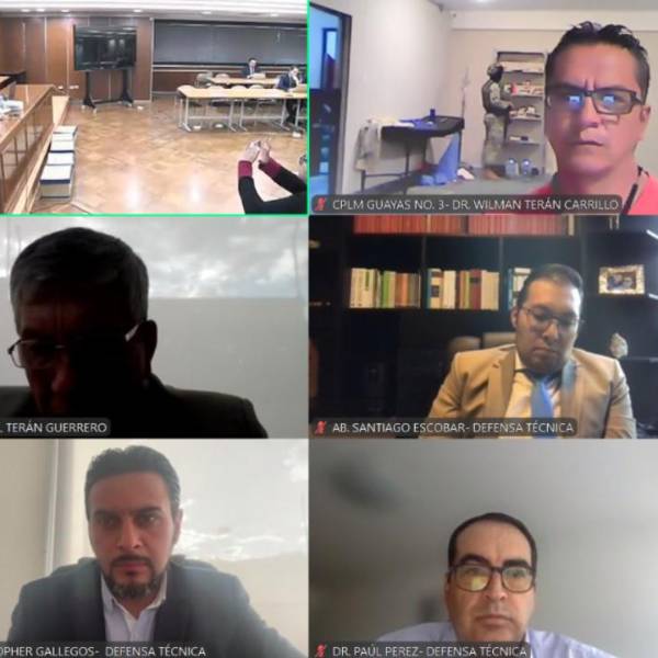 El juez Julio Inga iba a dar paso a la Fiscalía para que exponga su acusación, pero Terán interrumpió reiteradamente. Estaba conectado por zoom desde la cárcel La Roca de Guayaquil.