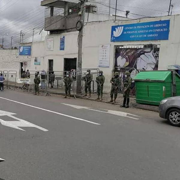 La cárcel de Ambato está cercada por vallas y hay presencia militar para custodiar los exteriores.