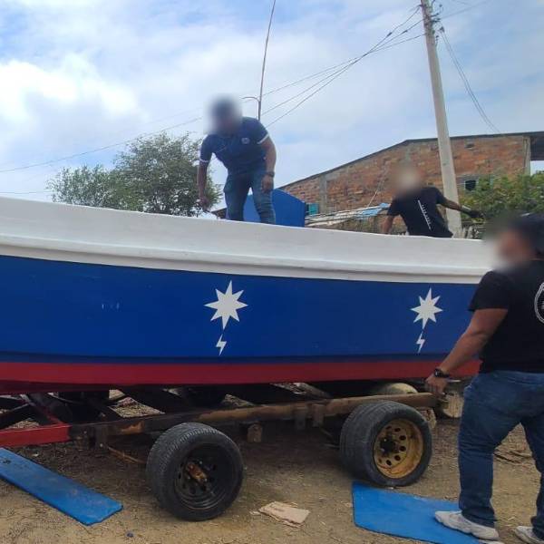 Según la Policía, la lancha transportaba varios bloques de sustancias catalogadas sujetas a fiscalización en su estructura (doble fondo), mientras navegaban a 200 millas náuticas del Puerto de Manta.