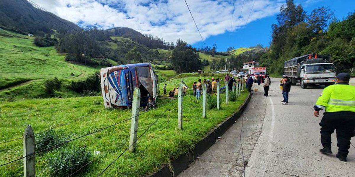El vehículo perteneciente a la cooperativa Santa Isabel quedó parcialmente destruido a un costado de la carretera. Además de bomberos, personal de la Comisión de Tránsito del Ecuador (CTE), Ministerio de Salud Pública, Cruz Roja e IESS atienden la emergencia.
