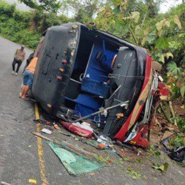 Diecinueve personas resultaron heridas luego que un bus de transporte interprovincial se volcara en la vía Santo Domingo-Los Bancos, en la provincia de Santo Domingo de los Tsáchilas.