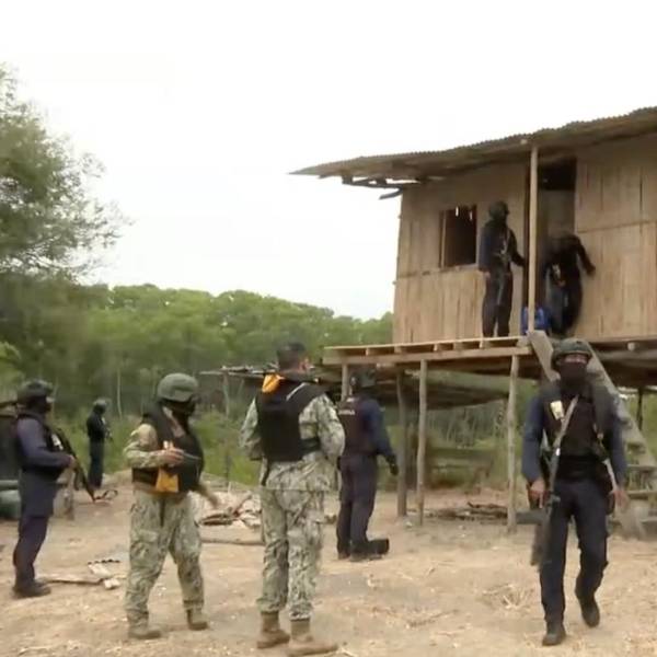 Veinte militares desembarcaron en una camaronera abandonada, un sitio que no tiene señal de telefonía celular y cuyo único acceso es por vía fluvial. A la entrada había un tanque de agua marcado con graffitis. A un kilómetro, los uniformados hallaron dos casas de caña, una recién reconstruida y con enseres y un sistema de comunicación satelital en su interior. Todo fue destruido por la Armada.