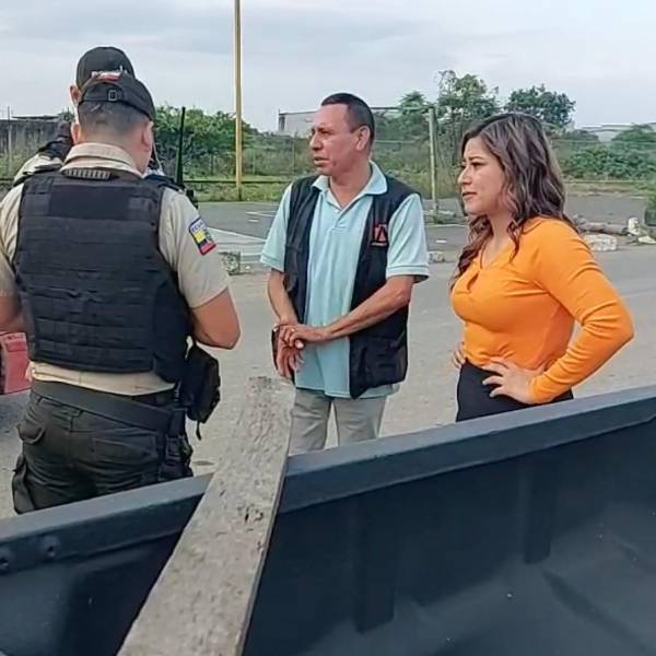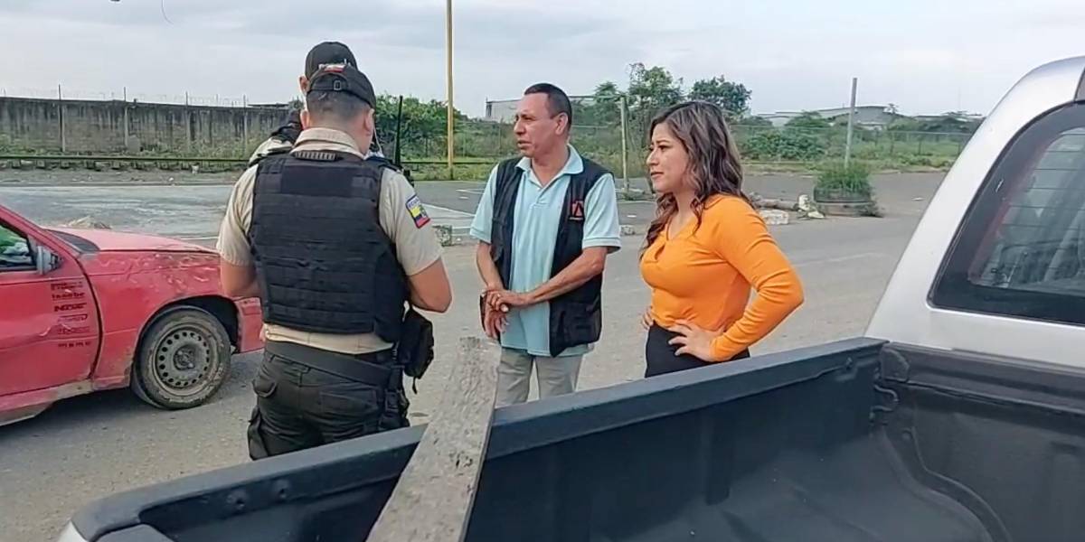 La periodista Vanessa Robles y el camarógrafo Eddy Robalino relataron lo sucedido a la policía.( )