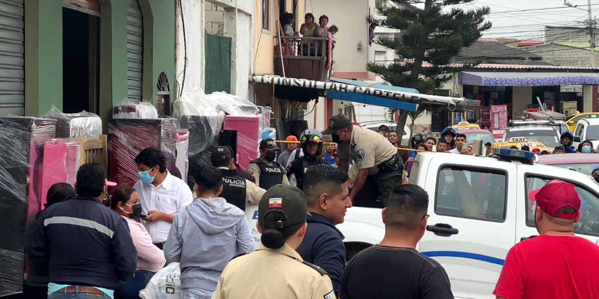Según Édison Miranda, comandante de la Policía Nacional en La Libertad, los sicarios abrieron fuego en los exteriores de la mueblería. Ahí dispararon tres veces.